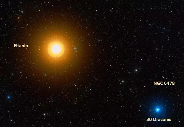 Eltanin can be used to find the faint spiral galaxy NGC 6478, which lies in the same field of view as the star.